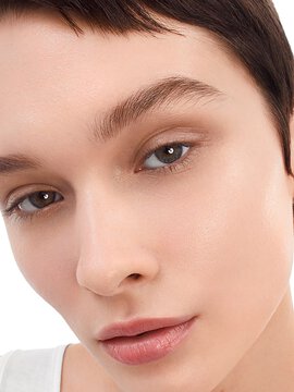 2. POUR: Tuangkan 7 tetes ke telapak tangan untuk wajah dan leher. Teteskan sedikit tekstur di dahi, pipi, hidung, dagu, dan leher.